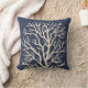 Almofada Árvore coral no creme em azuis marinhos escuros