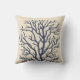Almofada Árvore coral no creme nos azuis marinhos escuros 2