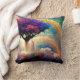 Almofada Árvore da vida com arco-íris, flores, ponte