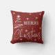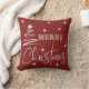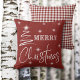 Travesseiro decorativo de Árvore de Natal Simplista Branca. Muito brilhante para as festas com estas belas estrelas brilhantes que rodeiam o guião Feliz Natal e uma delicada árvore esperta que descansa ao longo do lado. Xadrez de búfalos vermelho e branco atrás.