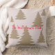 Um delicado, doce, simples design moderno, com árvores de abeto ouro em tom muito suave, cor-de-rosa claro em pó.Você pode personalizar, personalizar o travesseiro decorativo com seu nome de família ou um texto a seu desejo ou até apagar o texto se quiser uma aparência versátil mais limpa. O refinado esquema de cor natural neutra torna fácil combinar em seu ambiente ou com um presente de excelente, original e útil. É uma interpretação minimalista e mínima de cabana, casa de lago, estilo de fazenda.Um toque de atmosfera festiva lembra a feliz reunião de família ou amigos na temporada de férias de inverno.