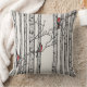 Almofada Árvores de Aves Vermelhas e de Marfim e Aves Cardi
