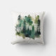 Uma bela pintura aquosa da floresta e árvores neste travesseiro decorativo quadrado. Disponível em duas dimensões.