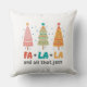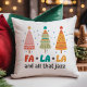 Mostre seu espírito natalino com esta almofada divertida que apresenta uma ilustração trendy em estilo retrô de três árvores de Natal adornadas com enfeites, tipografia colorida que diz “FA LA LA”, e uma paleta de cores suave em vermelho, verde e amarelo. Mantenha a frase “E Tudo Mais”, ou adicione seu próprio texto personalizado para capturar seu espírito natalino único.