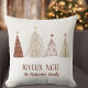 Traga o charme festivo para o seu lar com esta almofada quadrada com uma floresta nevada de árvores de Natal vermelhas, douradas e rosa-bege. Contra um fundo com listras bege, “Joyeux Noel” aparece em tipografia elegante sobre a base coberta de neve. Personalize com um nome ou frase personalizada em letra cursiva vermelha usando o modelo fácil. Um acessório aconchegante para decoração de Natal, quartos de hóspedes ou presente sazonal. Também disponível em design lombar. Prefere uma saudação diferente? Basta enviar uma mensagem ou e-mail para beachpausedesigns@gmail.com para uma alteração alegre.