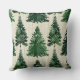 Árvores Evergreen de Natal em Travesseiro decorativo de Algodão Verde e Branco. Perfeito para uma cabana ou chalé confortável.