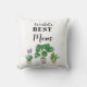 Travesseiro decorativo para a mãe com texto que diz a Melhor Mãe do Mundo. Apresentando plantas em recinto interior.