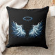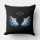 Almofada Asas Anjos Azuis Brilhantes em fundo preto