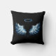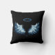 Almofada Asas Anjos Azuis Brilhantes em fundo preto