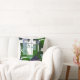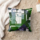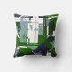 Apresentado é um design contemporâneo, batik, geométrico, abstrato, composto por formas e linhas com efeito "desbotado" padronizado em tons de verde claro a escuro e roxo (de lavanda a ameixa) junto com branco, influenciado pelo estilo Moderno do século Médio. Esta é uma arte moderna que evoca uma aquarela ou uma pintura acrílica em tons negros de cor através da canvas. Este design artístico cria uma vibração elegante, otimista e festiva, mas confortável e relaxada para a área viva, o quarto, o espaço de trabalho, o terraço ou a decoração do pátio, e também oferece um sentimento de calor e relaxamento. Há muito potencial decorador nesta peça de sotaque, que se ajustado em vários estilos (inovadores ao tradicionais), desde retrô/safra até fazenda moderna ao estilo rústico de hacienda a loft urbano e alta ascensão.
