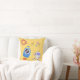 Travesseiro super fofo, branco é amarelo com fundo estrelado e tem astronauta e foguete espacial, com estrelas no céu e um sol quente. O verso é amarelo com estrelas.