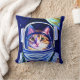 Travesseiro em um astronauta gengibre giro em um traje espacial, contra o espaço exterior, com a Terra ao fundo