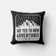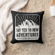 A Aventura aguarda o Travesseiro decorativo de citação preto e branco da Vintage