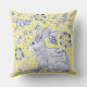 Um travesseiro de verão bonito para o seu baralho ou pátio! Minha trabalho de arte apresenta um coelho num cenário de floresta, rodeado de pássaros, flores, folhas e bagas. Minha arte é inspirada pela antiga Delft, Dedham e cerâmica e motins de chinoiserie. Isso é mostrado como a opção de tecido ao ar livre, mas você também pode comprar opções de tecido interno para o seu decor azul e amarelo. Trabalho de arte e design únicos de Tuzi Williams.