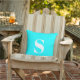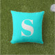 Azul Aqua, Monograma Inicial Travesseiro Exterior. Travesseiro ao ar livre decorativo com solteiro inicial. Personalize rápida e facilmente.