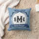 Almofada Azul Ardósia Reverso Chave Grega Arco Monograma