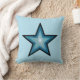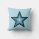 Design moderno com uma estrela azul e negra "brilhante" sobre um fundo azul claro na frente e um fundo preto plano. Travesseiro decorativo com um design personalizável para você personalizar com seu próprio texto, imagens e ideias. Esta é uma imagem de arte digital criada usando fotografias originais e técnicas digitais e impressa em tecido, ela não brilha ou contém faíscas reais.