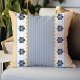 Esta adorável almofada de estilo cottage para interior e exterior apresenta flores simples em azul naval e amarelo, listras finas cinza azulado, rickrack e acentos rústicos de colchão. Este design é minimalista e moderno, por isso complementará qualquer estilo de decoração.
