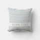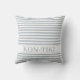 Azul empoeirado e listras brancas ao ar livre travesseiro. Travesseiro elegante personalizado de Pastel Blue e White striped com nome do barco, nome da casa da praia ou modelo de nome do resort da praia para lugares externos. Colocação do nome do barco em ambos os lados. Os travesseiros do Boat Name também são presentes de excelente para ela e para ele, barcos e marinheiros. #ybeedesign #ybeesea #dustybluepillows #dustyblueandwhitestripes #pastelbluepillows Porte personalizado ideias decoradas com amor oceânico © Design y.BEE SEA