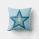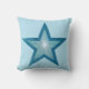 Design moderno com uma estrela azul e branca "brilhante" num fundo azul pálido. Travesseiro decorativo com um design personalizável para você personalizar com seu próprio texto, imagens e ideias. Esta é uma imagem de arte digital criada usando fotografias originais e técnicas digitais e impressa em tecido, ela não brilha ou contém faíscas reais.