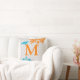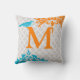 Almofada Azulejo Marroquino Monograma Aqua Coral Pássaro da