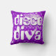 Travesseiro decorativo com um padrão impresso e texto estilizado, divertido e estilizado, de "aparência de azulejo espelhado disco" em tons de roxo e branco e texto retrô. Pode ser usado como um fundo para o seu próprio texto, imagens e ideias. Observe que esta é uma imagem de arte digital impressa, ela não brilha ou contém espelhos reais ou brilho.