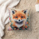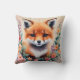 Este travesseiro apresenta um retrato de arte floral de uma raposa vermelha bebê. Trabalho de arte de canino super fofo de um bebê enquadrado por plantas coloridas floridas. Excelente para quartos para bebês ou crianças ou qualquer pessoa que ame raposas e outros animais da floresta!