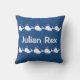 Projetado por Sandy Closs Personalize com o nome para dar a uma criança uma parte do presente do oceano temido baleia branca decorada em travesseiro azul de um lado e tiras brancas de baleias atrás.