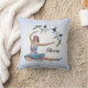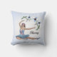 Linda bailarina em tutu azul e chinelos colocados em posição sentada.