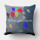 Almofada com Nome da Família Reversível. A frente da almofada tem a frase "Siga seus Sonhos" com um lindo céu azul e nuvens brancas fofas e gigantescas, Balões coloridos e Pipas voando no céu com notas musicais e luas crescentes decorando as pipas alto acima das árvores. O VERSO da Almofada 50 cm x 50 cm é azul sólido com a frase "Atrelde Memórias Doces da Infância". PERSONALIZE com o Primeiro Nome de uma Criança ou Crianças, o Nome da SUA Família e Ano de Fundação. (Se os seus Nomes são muito longos, você pode precisar clicar em PERSONALIZAR para diminuir o tamanho da fonte). Veja minha Loja para este design na almofada tamanho 40 cm x 40 cm. Fotografia Original, design de Arte © 2014 TamiraZDesigns