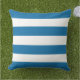 O design travesseiro exterior simples apresenta um padrão de faixas horizontais brancas largas com um fundo azul cobalto. Design clássico com qualquer estilo de decoração. A cor de fundo pode ser modificada.