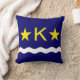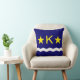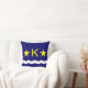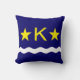 Travesseiro decorativo com bandeira de Kinshasa, capital da República Democrática do Congo, bandeira azul com onda branca, duas estrelas ouros e letra "K" no centro