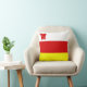 Travesseiro decorativo com pavilhão da cidade de Papais noeis Barbara, Califórnia; bandeira com tricolor vertical de branco, vermelho e amarelo, com ilustração de um forte vermelho no canto superior esquerdo