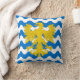 "Barry wavy azure e argent, uma águia exibida ou." Crachá de Populace para a Baronia de Aarquelle (SCA). O verso do travesseiro é um padrão renascentista em cores coordenadas.