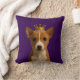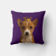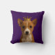 Cachorro no travesseiro decorativo Dourado da Coroa de Ricaso. Um adorável cachorrinho basenji num fundo roxo profundo. Ideal para amantes de animais/cães.