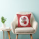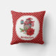Urso de Natal bonito com cachecol, presente de Natal e poinsettia. O fundo é vermelho com faixas brancas na diagonal. Personalizar seu nome