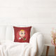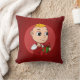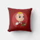 Travesseiro decorativo com uma ilustração de uma menina ou um menino feliz sorridente, o bebê está vestindo roupas vermelhas e brancas e segurando um presente; design de Natal para crianças de fundo vermelho Para ver mais das minhas personagens de desenho animados, por favor visite minha loja.