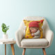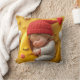 Travesseiro decorativo macio com um bebê dormindo enrolado em uma lua crescente contra um fundo de noite estrelada, perfeito para decoração de berçário, quartos de bebê, roupa de cama infantil, presentes e cenas de sono aconchegantes.