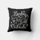Design de travesseiro de na moda sazonal apresenta um design de tipografia "Baby it's Cold Outside" com sotaques de estrelas e flocos de neve. A cor preta de fundo pode ser personalizada para coordenar com a decoração de feriados.