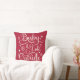 O design do travesseiro sazonal apresenta o roteiro "Baby it's Cold Outside" escrevendo design de texto com sotaques de estrelas e flocos de neve e um padrão de faixas de canas brancas e vermelhas na diagonal no verso. A cor vermelha escura do fundo pode ser personalizada para coordenar com o decoro de férias.