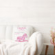 Um adorável desenho de cavalo de balanço rosa. Este travesseiro bonito dá as boas-vindas a uma menina. Um travesseiro personalizado inclui o nome do bebê, a data de nascimento, a hora de nascimento, o peso e a duração do nascimento. O reverso do travesseiro é rosa.