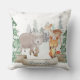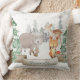 Este travesseiro decorativo personalizado apresenta um acolhedor tema de inverno em áreas florestais. Pequenos animais, um filhote de urso, esquilo, veado e raposa, descansam entre pinheiros em uma floresta. Bonito pequenos flocos de neve caem acima dos animais. Uma faixa é colocada abaixo da imagem com um nome de exemplo impresso sobre ela. Você pode personalizar o banner para incluir seu próprio nome ou outro texto personalizado.