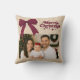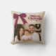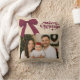 Uma pá bege com aspecto de fundo, decorada com um arco arrojado. Texto e foto. Feliz Natal é escrito com uma fonte de estilo retrô. Uma imagem de burlap, não é tecido burlap.
