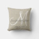 Travesseiro personalizado bege, cinza e monograma branco com nomes de noiva e noiva e data de casamento em um design de sobreposição de fonte de script em um fundo de efeito fotográfico de linha bege IMPRESSO. Elke Clarke© para MonogramaGallery no Zazzle. Faz um presente excelente para recém-casados. Trendy de excelente, acessório elegante para o seu quarto, cadeira favorita, como decoração divertida em sua sala de estar ou adição decorativa formal à sua sala de estar. Personalize com seus nomes, monograma inicial e data de casamento.