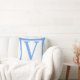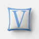 Travesseiro decorativo do monograma de V. Bonito da letra (única inicial). A beira e a única letra são feitas nos azuis bebés.