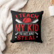 Travesseiro decorativo de beisebol para mães e pais com uma criança que joga beisebol com um fundo que você pode mudar para qualquer cor que quiser. Este travesseiro decorativo de basebol no templo desportivo diz que Ensino o Meu Filho a Atingir e Roubar!