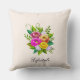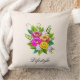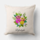 Buquê de flores coloridas e moderno em Almofada de lançamento de marfim. Flores em tons de rosa, dourado rosa e amarelo. O texto pode ser personalizado.