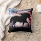 Um bonito travesseiro decorativo com um belo cavalo e uma bandeira americana.