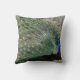 Imagem de um pavão masculino com suas penas mostradas no chão. Foto tirada no Zoo de Milwaukee County.