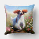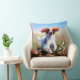 Um setter marrom e branco corre alegremente através de um campo de flores nesta trabalho de arte divertida.
